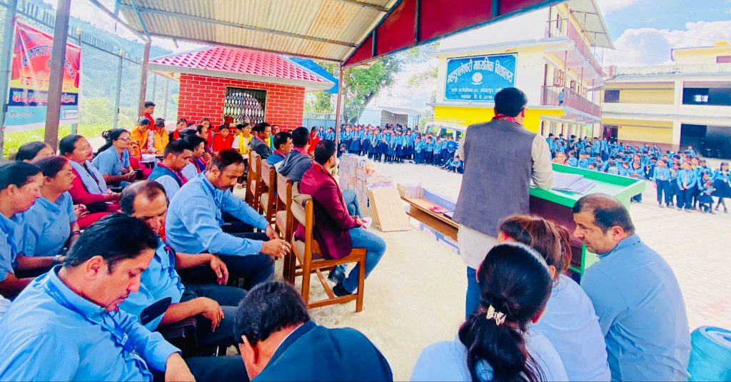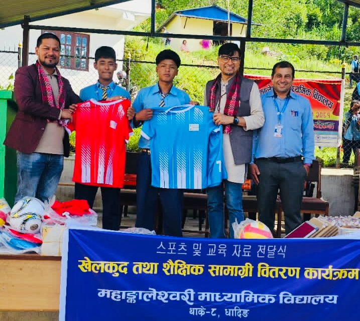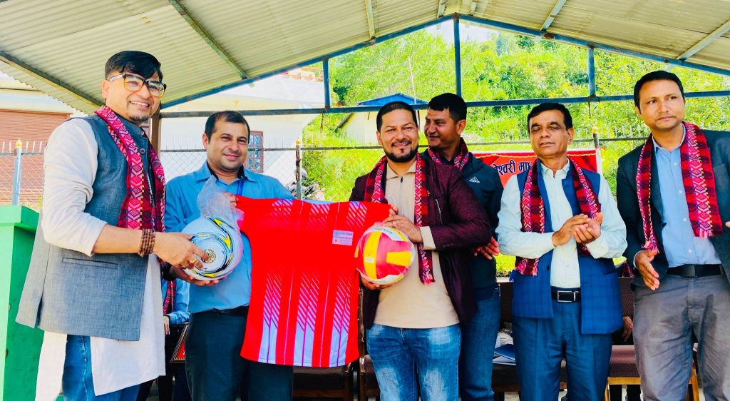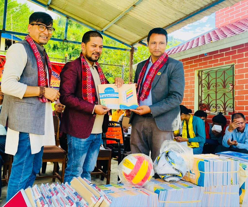 कार्यक्रममा विद्यालयका प्रधानाध्यापक मुकुन्द थापा ज्यूलाई शैक्षिक सामग्री र खेलकुदका सामग्री विद्यालयका खेल शिक्षक ईश्वर पन्त ज्यूलाई हस्तान्तरण गरियो। खेलाडीहरूलाई भने ड्रेस वितरण गरिएको थियो।