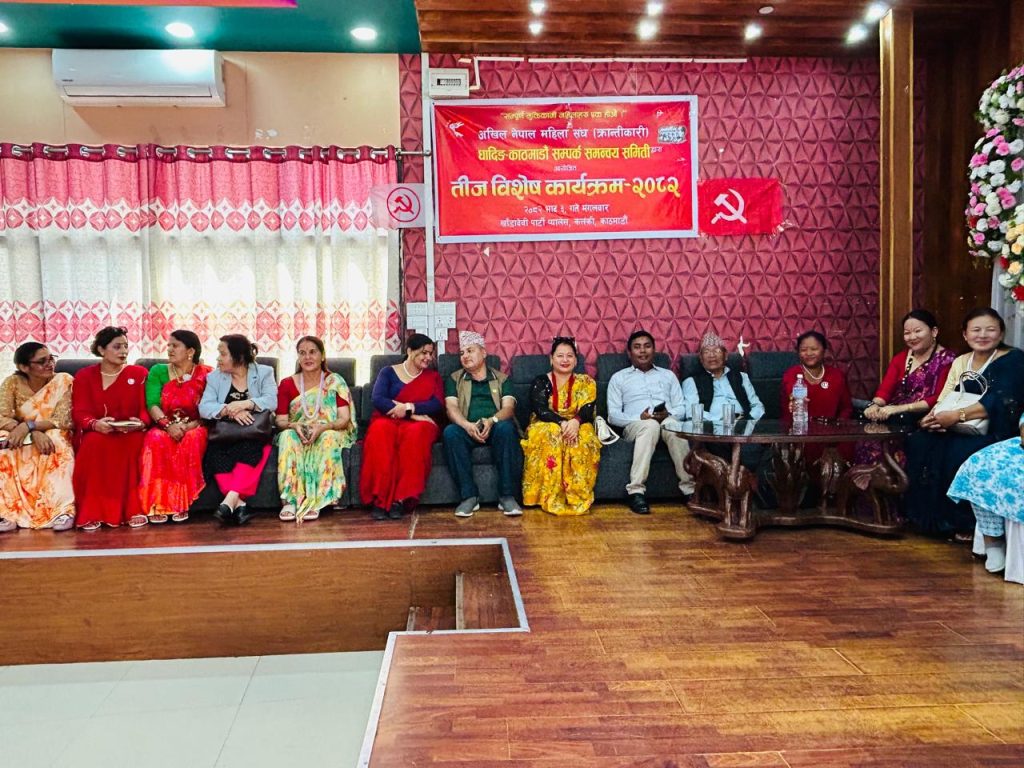 काठमाडौं – अखिल नेपाल महिला संघ (क्रान्तिकारी) धादिङ–काठमाडौँ सम्पर्क समन्वय जिल्ला कमिटीद्वारा आयोजित तीज विशेष कार्यक्रम–२०८२ भाद्र ३ गते मंगलवार काठमाडौंको खाँडादेवी पार्टी प्यालेस, कलंकीमा सम्पन्न भएको छ।