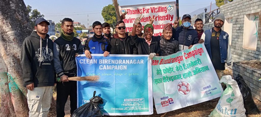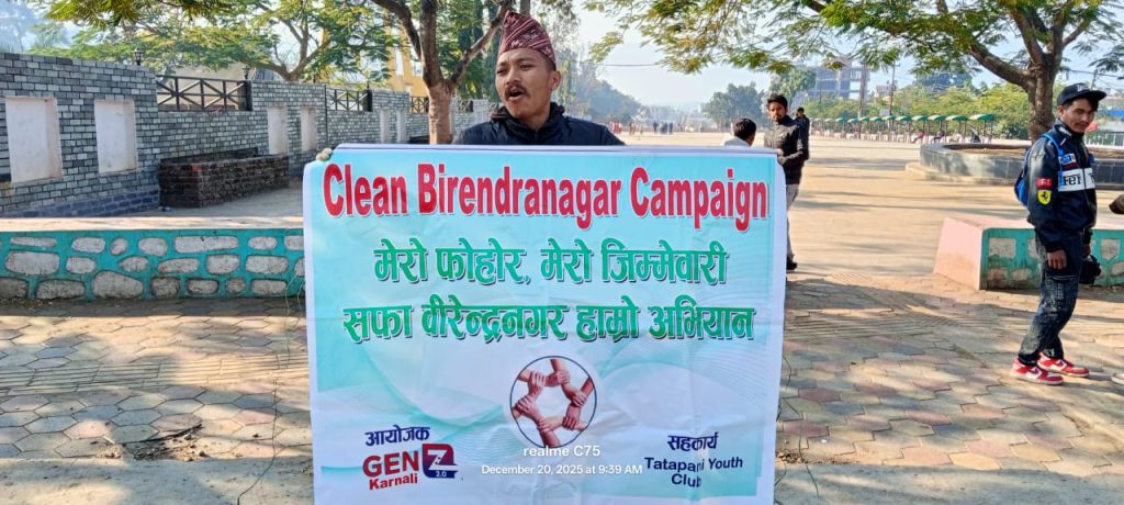 बिरेन्द्रनगरमा देखिँदै आएको अव्यवस्थित सरसफाइ, अवरुद्ध नाली प्रणाली र सार्वजनिक संरचनाप्रतिको बेवास्ता विरुद्ध युवाहरूको पहलमा ‘Clean Birendranagar Campaign’ निरन्तर रूपमा सञ्चालन भइरहेको छ। यस अभियानको मुख्य उद्देश्य शहरलाई सफा राख्नु, पानी निकास प्रणाली व्यवस्थित गराउनु र सम्बन्धित निकायलाई जिम्मेवार बनाउनु हो।